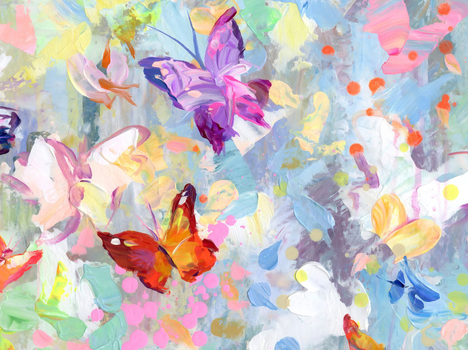 This abstract painting captures the feeling of spring coming alive — butterflies and blossoms blending into soft color and light. The forms are fluid, almost dreamlike, suggesting motion and renewal without sharp detail. It brings a calm, uplifting energy, like the first warm air of the season filling a quiet morning.